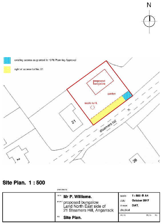 Outline planning permission with some matters reserved: Three bedroomed dormer bungalow plus turning space. - Land NE Of 21 Steamers Hill Angarrack Cornwall