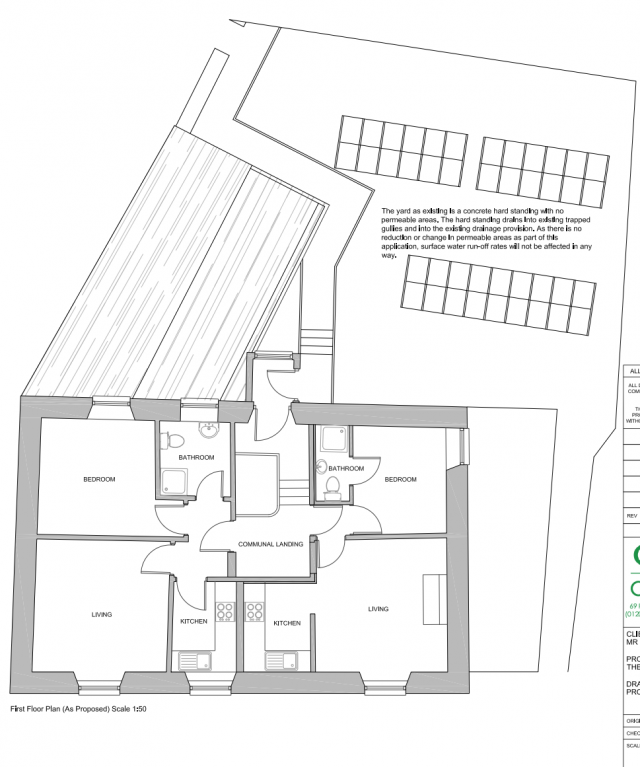 - Formation of safe means of escape for existing first floor residential accommodation including construction of external staircase. Conversion of first floor apartment to form two apartments