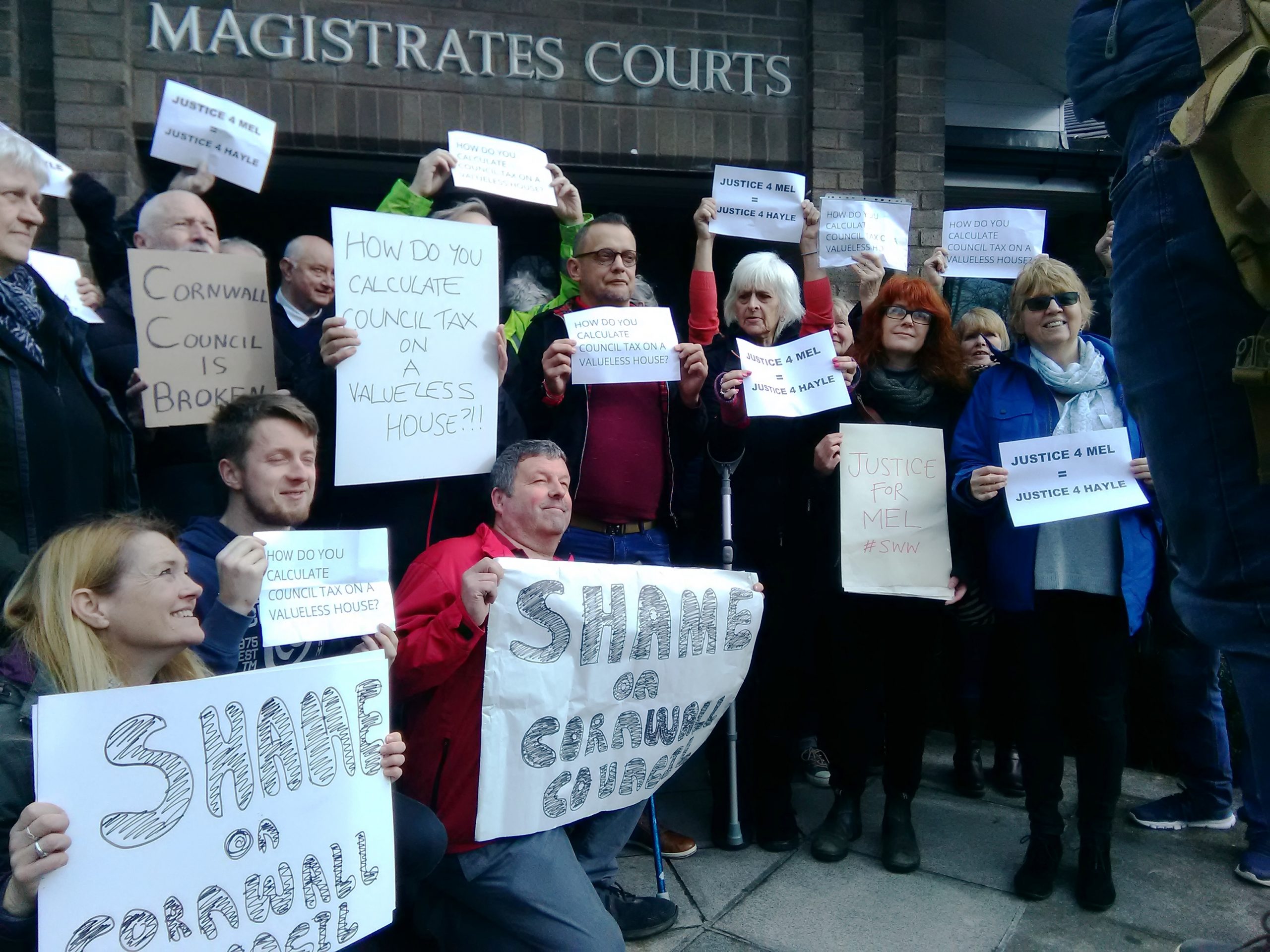 Campaigners gather at Truro magistrates court for council tax protest as 14-year row over Hayle water pipe takes a new twist