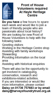 200201 | Front of House Volunteers required At Hayle Heritage Centre