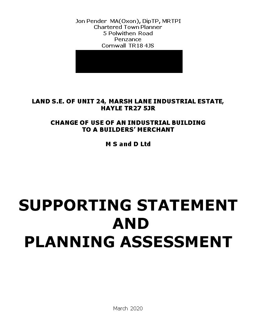 | 08 Apr 2020 | Statement - Planning | | SUPPORTING STATEMENT AND PLANNING ASSESSMENT | |