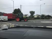 An eye-witness said a tractor towing a huge trailer piled high with veg has shed 'all over' the roundabout