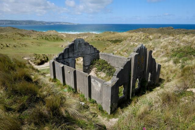 Although most of the structures have gone since the factory was closed down in 1920, there are still four roofless buildings hidden within the dunes, which are believed to possibly be the earliest known surviving group of mass-concrete magazines.