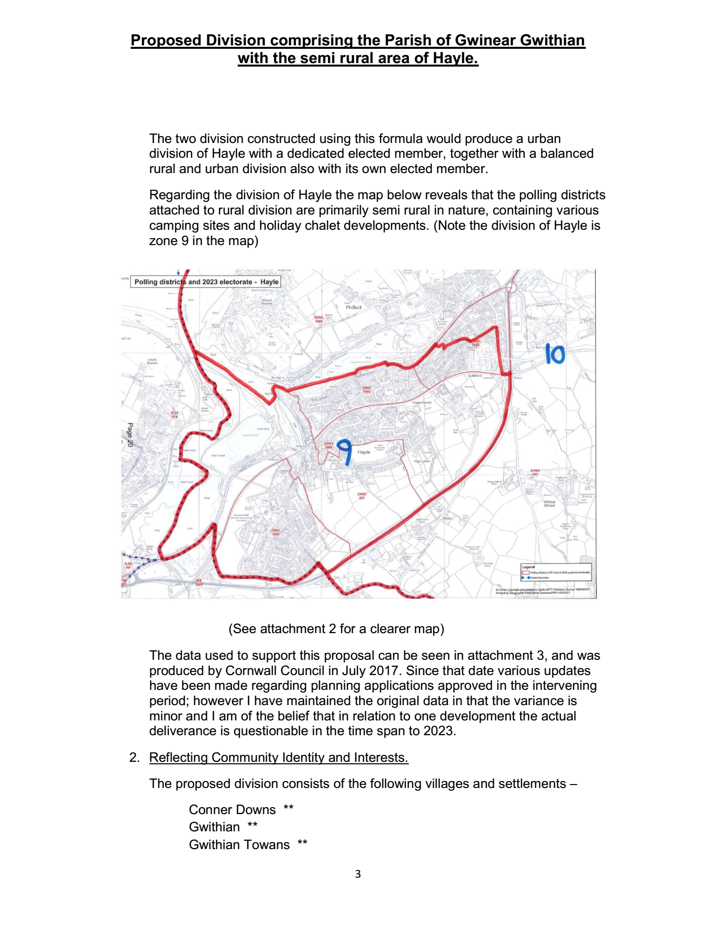 Proposed division Gwinear Gwithian with semi rural Hayle consisting of –
