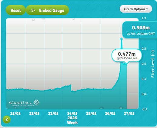 27 Jan 2026 - Angarrack Gauge overtopped - 02:07-11:01; Chandra third named storm of 2026 after Goretti and Ingrid